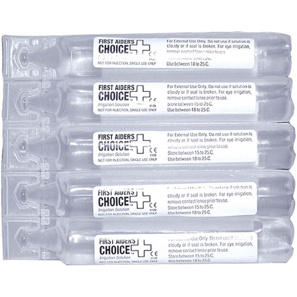 The First aiders choice saline solution is handy to have around the home or the workplace, they can be used in case of an accident or emergency to clean the eyeball and prevent further damage or infection
