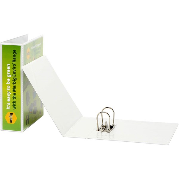 The marbig clearview lever arch file is constructed from 100% recycled board and recycled polypropylene