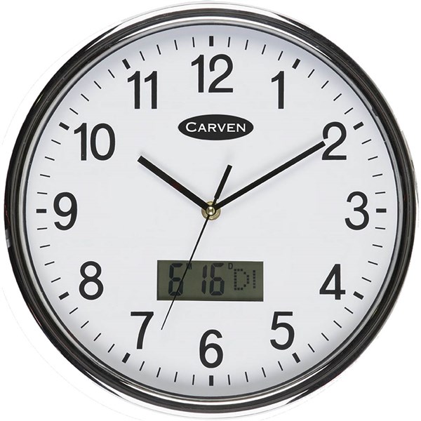 Carven analogue and digital wall clocks has a analogue and LCD clock for dual time and day or date function