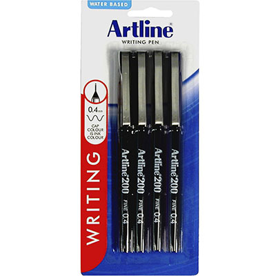 ARTLINE 200 FINELINER PEN 0.4MM BLACK PACK 4