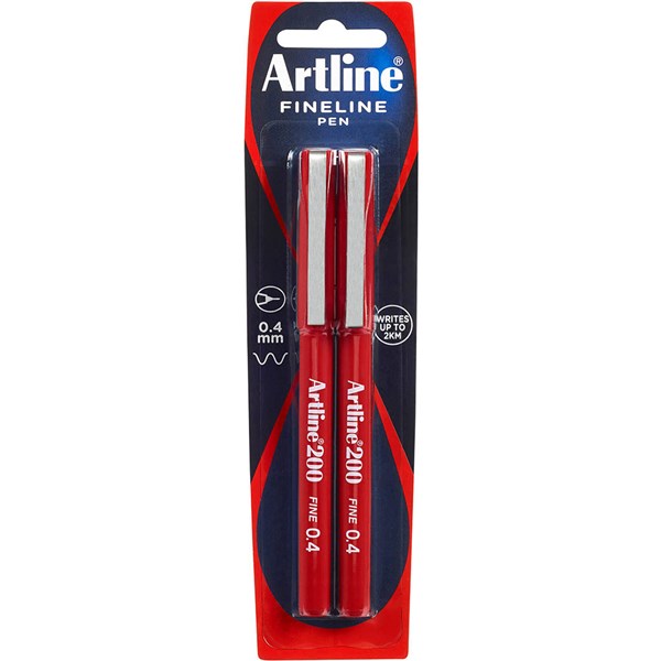 ARTLINE 200 FINELINER PEN 0.4MM RED PACK 2