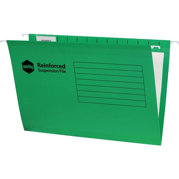 The Marbig suspension files come complete with tabs and inserts and are also available in a variety of colours
