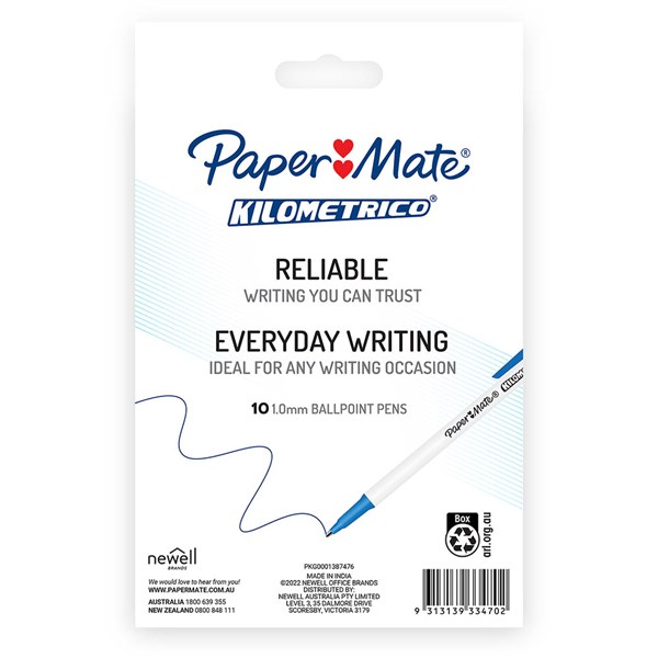PAPERMATE KILOMETRICO BALLPOINT PENS MEDIUM BLUE PACK 10