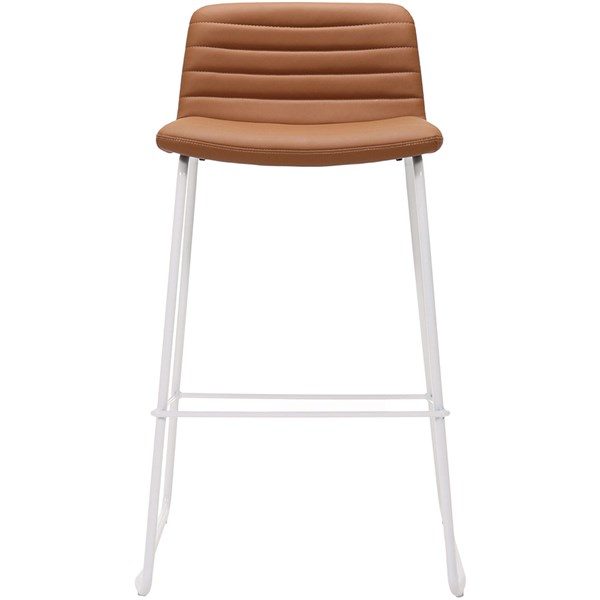 Featuring a comfortable leather seat with ribbed stitching detail and a sturdy powder-coated sled base, this stool offers both style and support