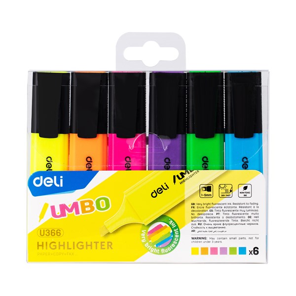 DELI HIGHLIGHTER CHISEL ASSORTED WALLET 6