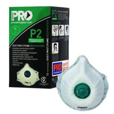 Suitable for use with dust, smoke, mist & fume.Activated carbon layer reduces exposure to nuisance levels of organic vapor and odour.Lightweight moulded design with foam nose seal for comfort and superior fit.ProValve for increased exhalation efficiency and comfort, reduces heat build-up under mask.Easily worn with glasses & goggles.P2 Certified to AS/NZS 1716:2012 Respiratory Protective Devices.Dual latex free elastic straps for ease of donning & doffing.Resealable bag for hygienic storage.Qty/Box - 12Qty/Carton - 20 Boxes