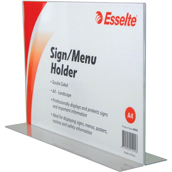 ESSELTE SIGN / MENU HOLDER DOUBLE SIDED LANDSCAPE A4 CLEAR