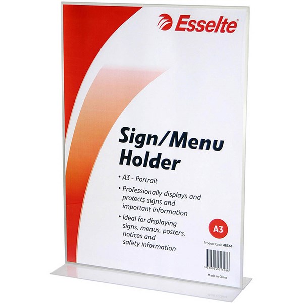 ESSELTE SIGN / MENU HOLDER DOUBLE SIDED PORTRAIT A3 CLEAR