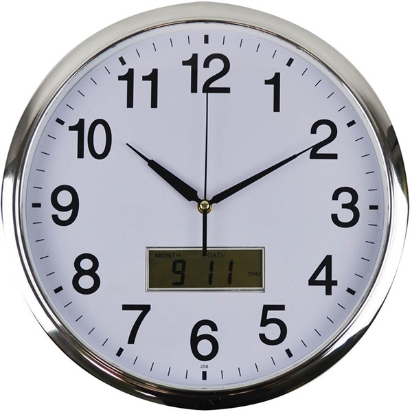 Do more than just tell the time with this Contemporary wall mountable clock with LCD date and month display
