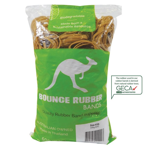 - GECA Claim Authenticated: The rubber used in Bounce Rubber bands is derived from natural rubber trees