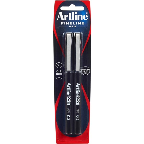 ARTLINE 220 FINELINER PEN 0.2MM BLACK PACK 2