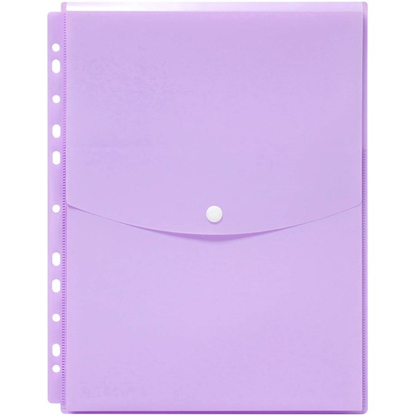 The Marbig binder wallet makes filing easy with its top button closure and is offered in a variety of popular pastel colours