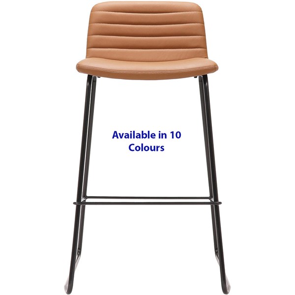 - Featuring a comfortable leather seat with ribbed stitching detail and a sturdy powder-coated sled base, this stool offers both style and support